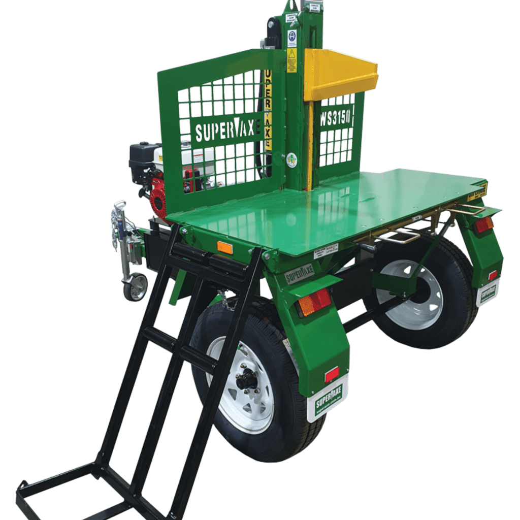 The WS4150 Superaxe is fast, powerful and highly productive, making it the ideal solution for splitting large volumes of firewood. Producing 26 tons of splitting force, the WS4150 is the most powerful Superaxe in the range with extra features built in to ensure large volumes of firewood can be split with ease. These features include a 18hp Honda powerpack, 15″ wheels, 200kg capacity hydraulic block lifter, extra-large bench area with in-built rollers and double-handed controls. The WS4150 is also available with a 3.6m fold out elevator with electric winch, road registration or a hire kit.